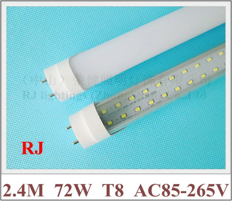 Achat G13 LED tube fluorescent tube SMD2835 2 rangées nouveau design T8 2400mm 2.4 m 8FT SMD 2835 384led 72 w T8 G13 super lumineux CE 8000lm Pas Cher Prix