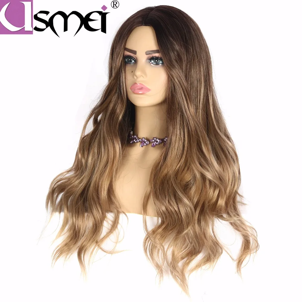 Acheter USMEI Longs ondulés perruques cosplay pour les femmes 26 pouces synthétique perruque Blonde Brun Noir Rose faux cheveux pour choisir 7 couleurs Ombre cheveux Pas Cher Prix