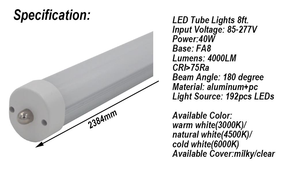 Acheter Meilleur 25 100 pièces 8FT. 2.4 m led ampoule à tube 40 W FA8 seule broche lampe rétro 8 pieds F96 T8 T10 T12 Flurescent Lumières 85 277 V 110 V Pas Cher Prix.