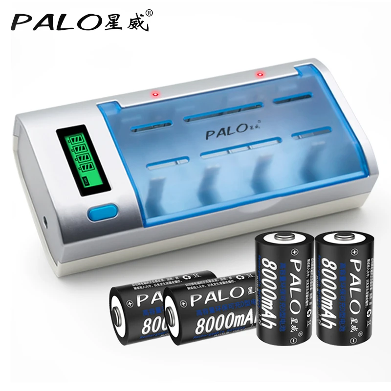 Acheter Meilleur PALO Multi fonction Chargeur LCD Intelligent Chargeur de Batterie Pour AA AAA SC C D 9 V Taille Batteries avec 4 pcs 8000 mAh D Taille Batterie Pas Cher Prix.
