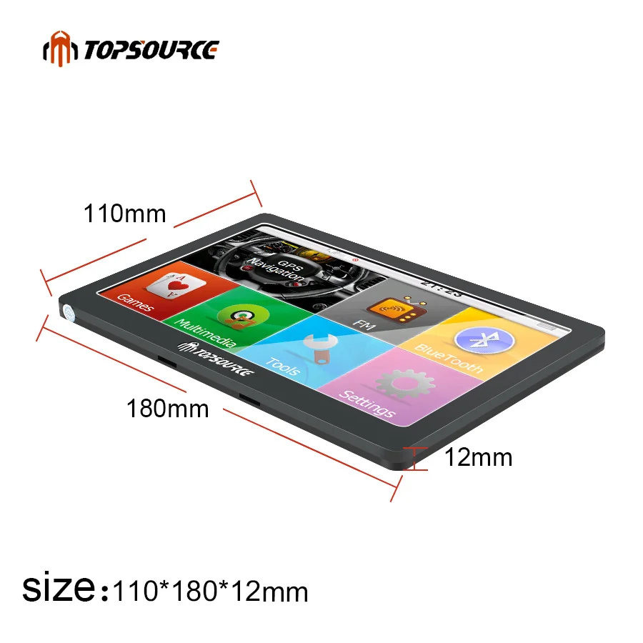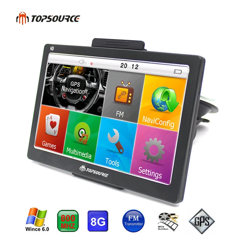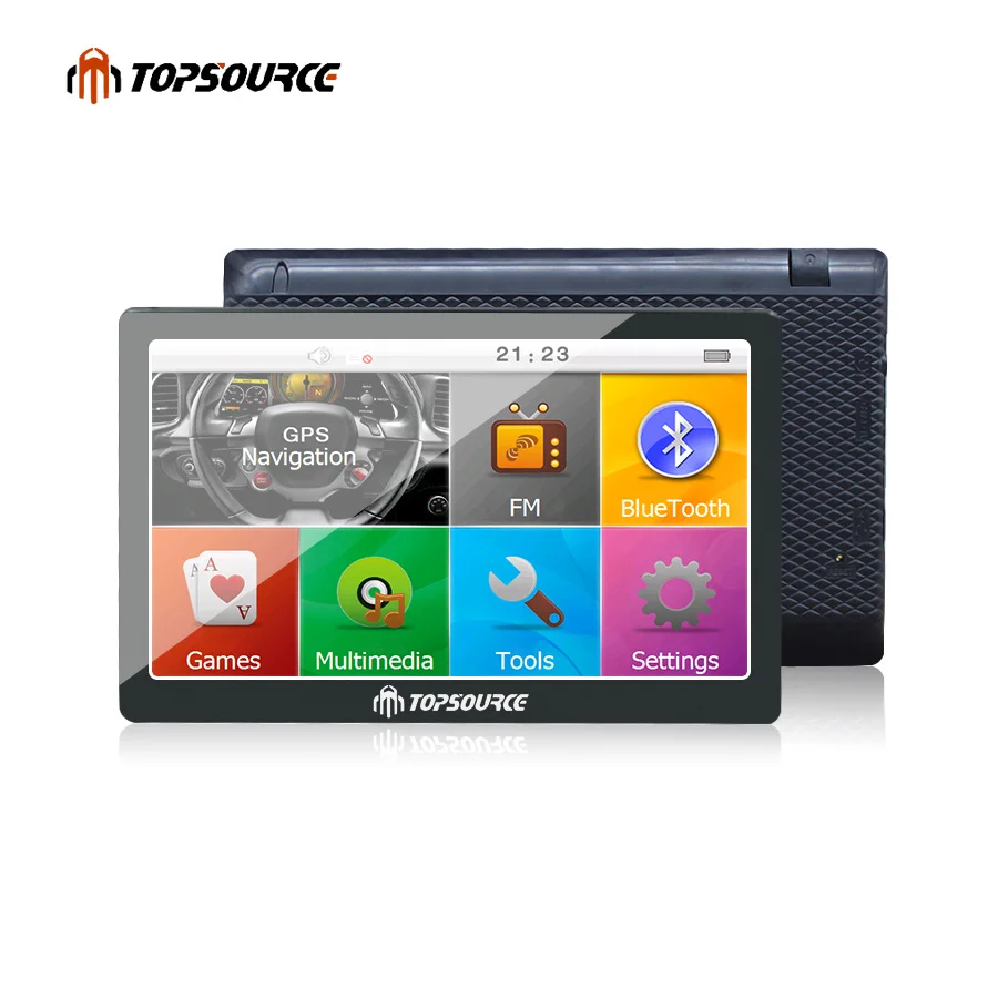 Vente Meilleur TOPSOURCE TS708 7 pouce Voiture GPS Navigation 800 mhz FM 8 gb 2018 Cartes gratuites pour Navitel Russie Espagne Kazakhstan Europe USA CAMION GPS Pas Cher Prix.
