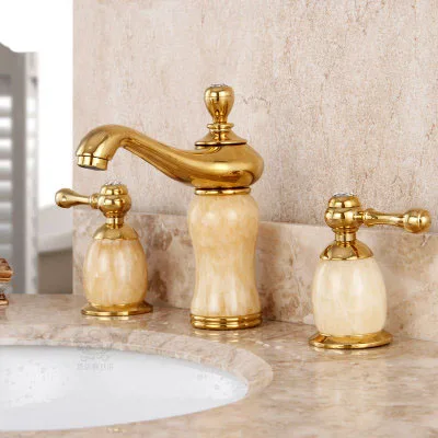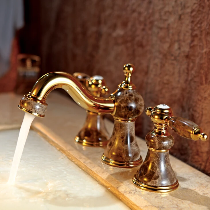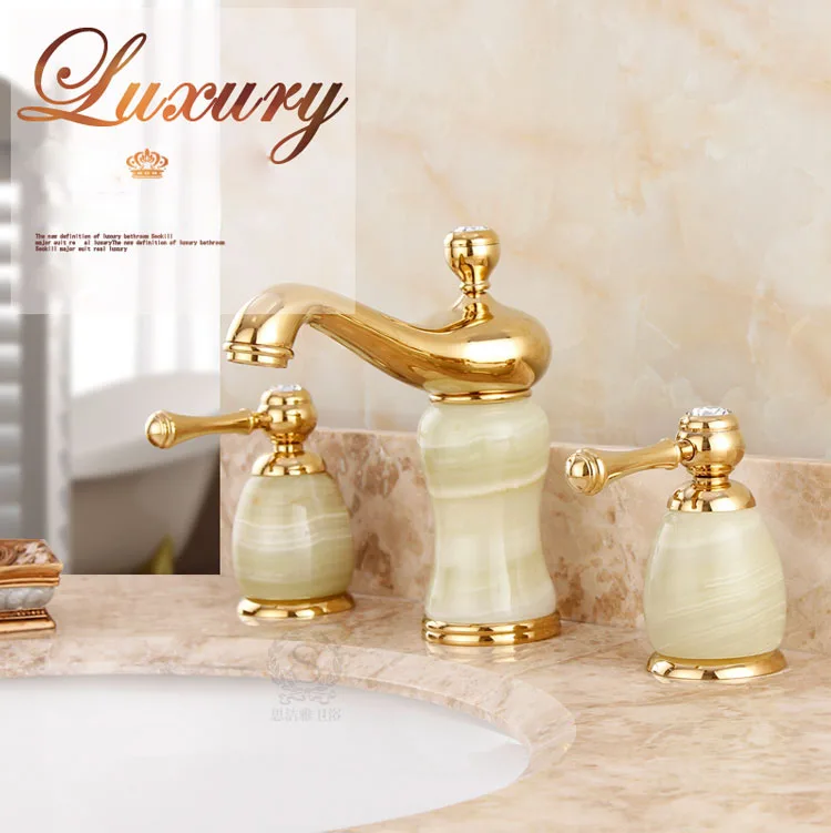 . Achat Laiton Jade Torneira Cozinha avec Marbre Bassin Or Finition 8 Pouce Salle De Bains Robinet Encastré Bassin Mitigeur Avec Double Poignée Pas Cher Prix.