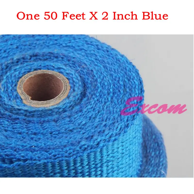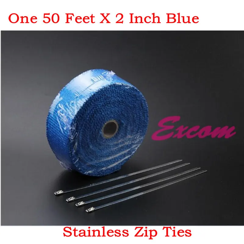 . Vente MOKALI 2 \"x 50 (taille) Bleu moto automobile TÊTE D ÉCHAPPEMENT TURBO COLLECTEUR D ADMISSION CHALEUR WRAP ROULEAU + 8 ZIP CRAVATES Pas Cher Prix.