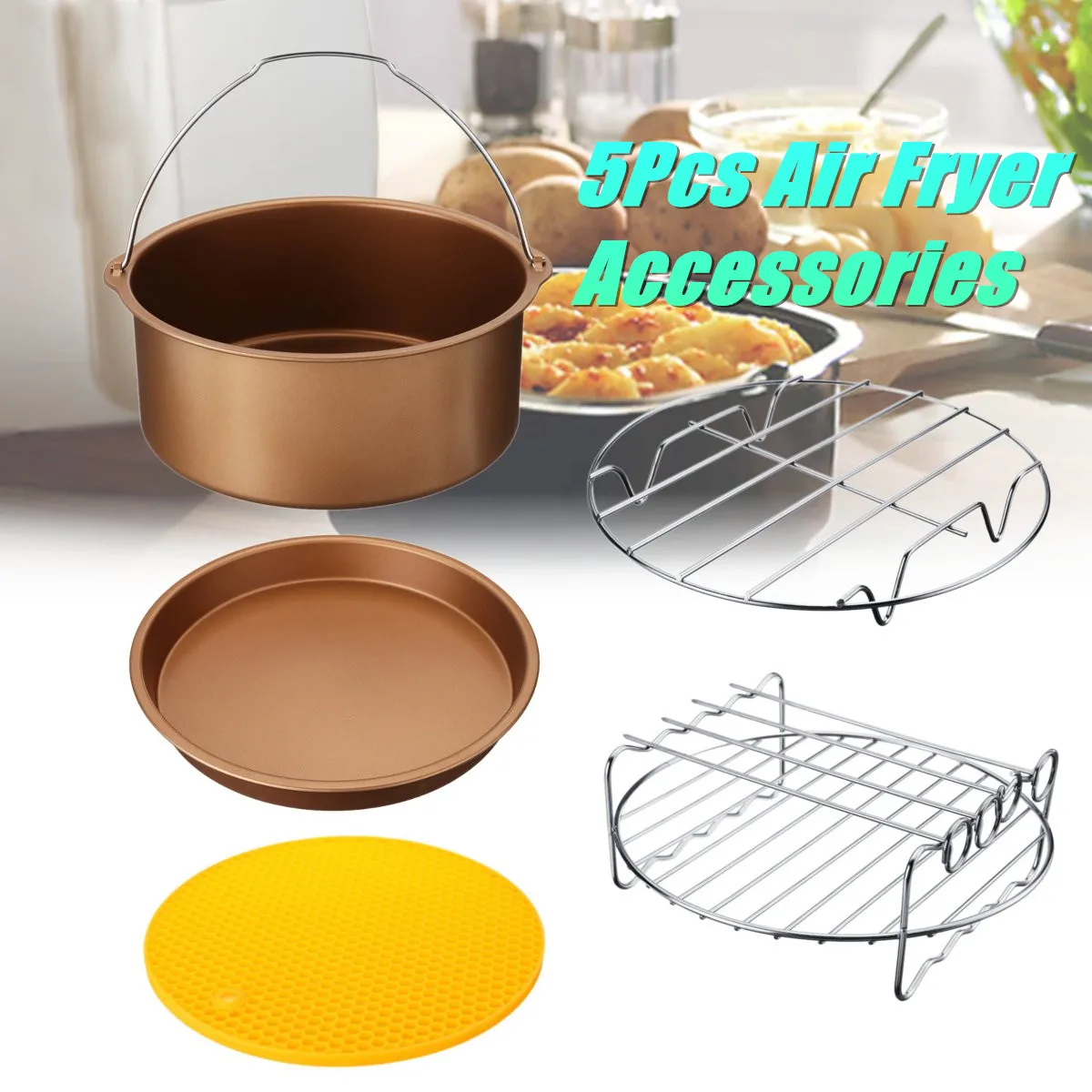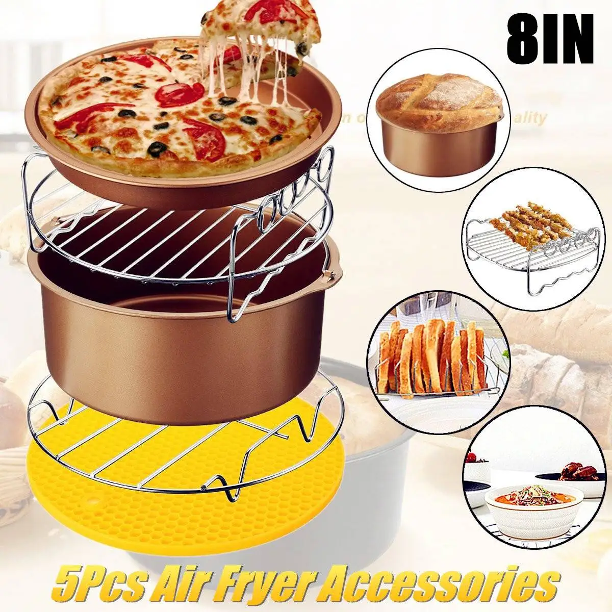 Achat 5 pcs ensemble 8 Pouces Air poêle à frire Accessoires Friteuse Cuisson Panier assiette à pizza Grill set de table Multi fonctionnelle accessoire de cuisine Chaude Pas Cher En Ligne