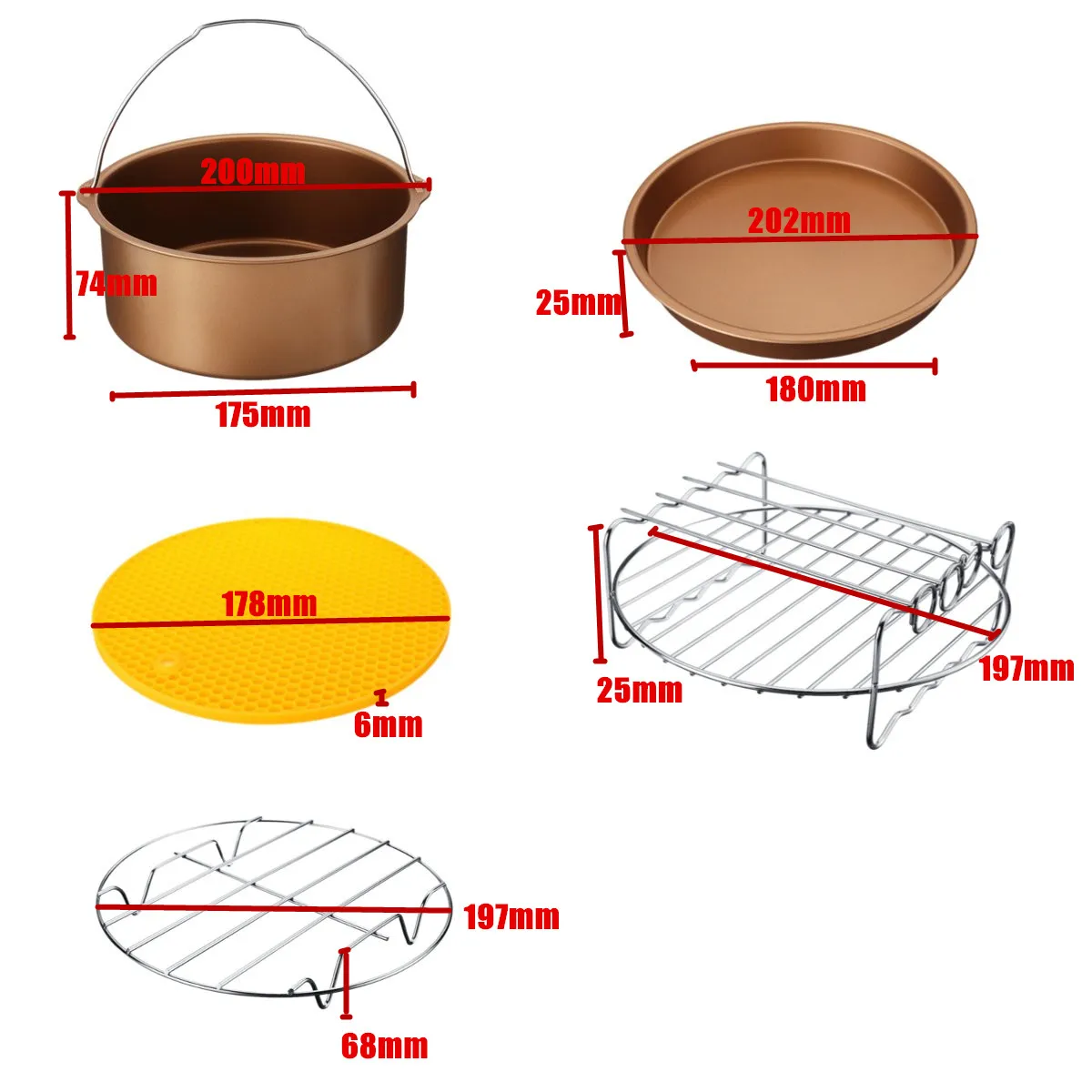 Acheter Meilleur 5 pcs ensemble 8 Pouces Air poêle à frire Accessoires Friteuse Cuisson Panier assiette à pizza Grill set de table Multi fonctionnelle accessoire de cuisine Chaude Pas Cher Prix.