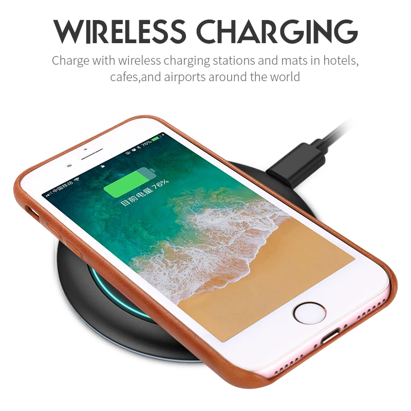 . Acheter Jisoncase Original En Cuir étui pour iPhone 8 8 Plus Housse En Cuir Véritable De Luxe Mince revêtement arrière pour iPhone 7 7 Plus Capa Pas Cher Prix.