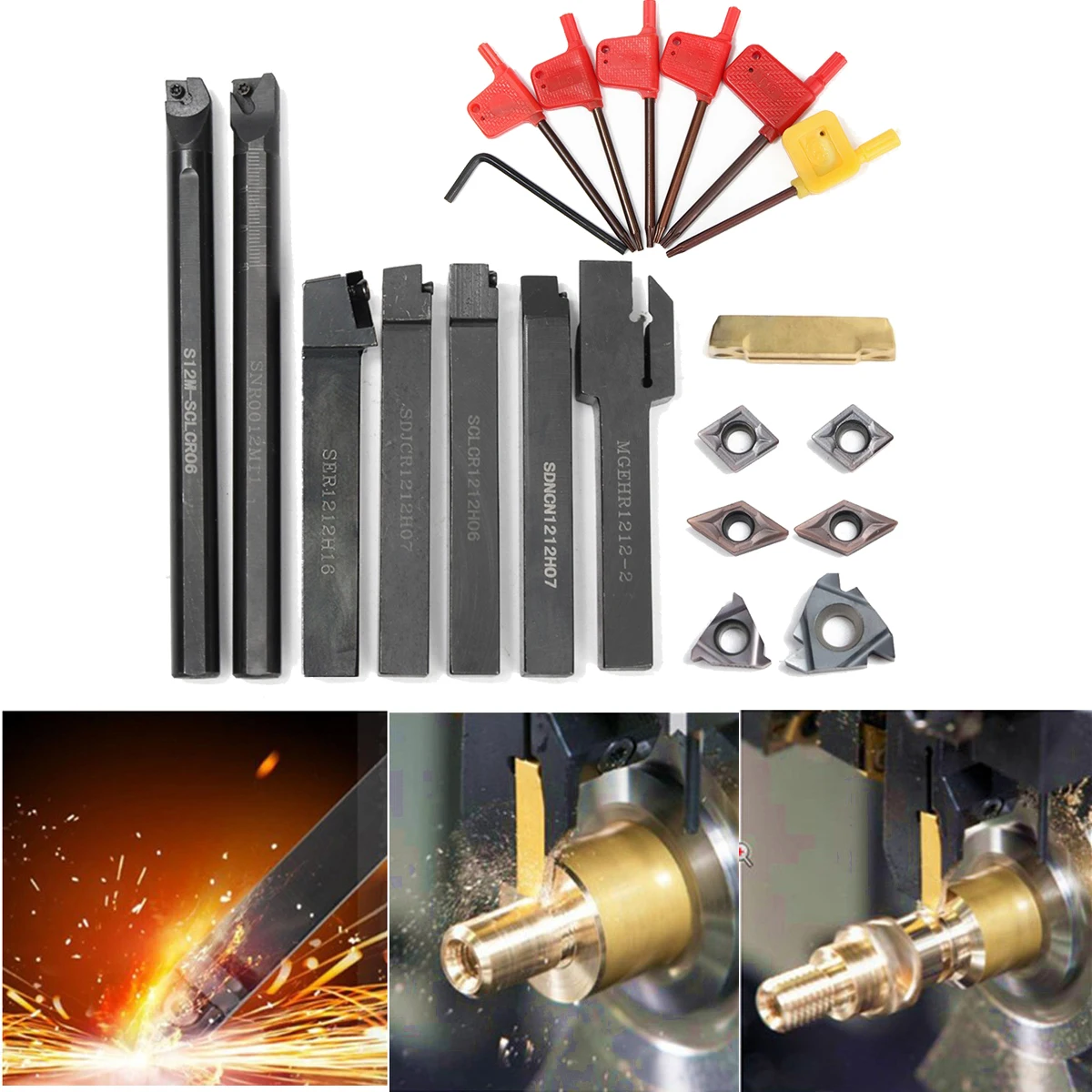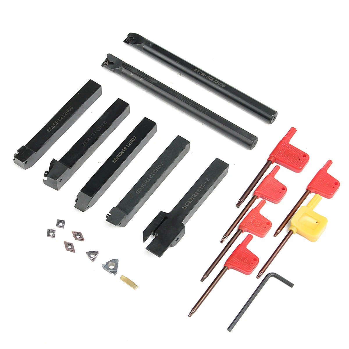 Vente Meilleur 12mm Tour Porte Outil Barre D alésage + 7 pcs Carbure Inserts + Clé Pour Tour Outil de Tournage Pas Cher Prix.