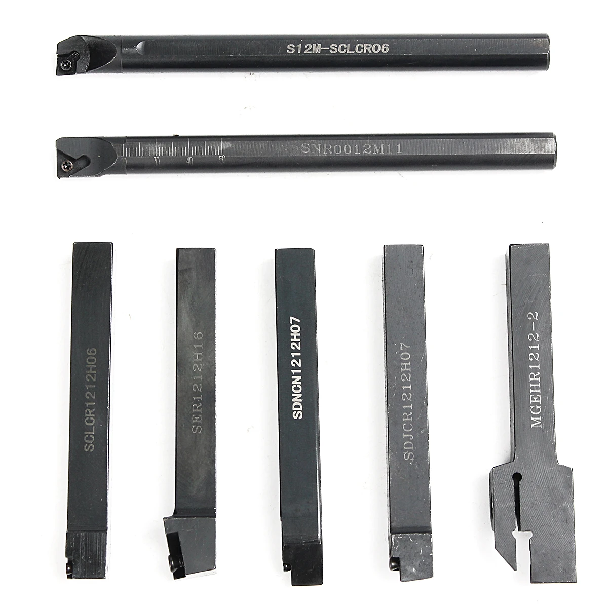 Acheter 12mm Tour Porte Outil Barre D alésage + 7 pcs Carbure Inserts + Clé Pour Tour Outil de Tournage Pas Cher Prix