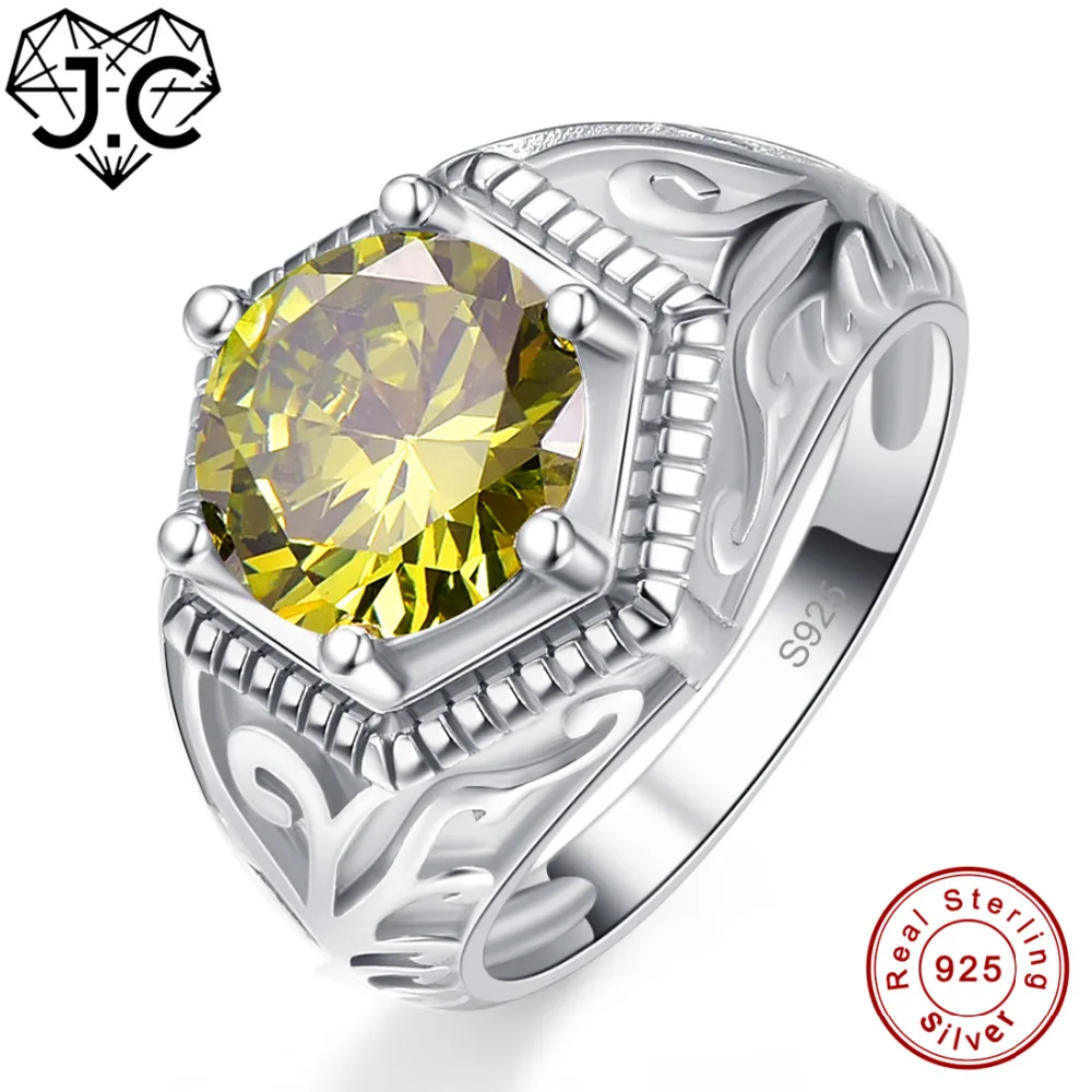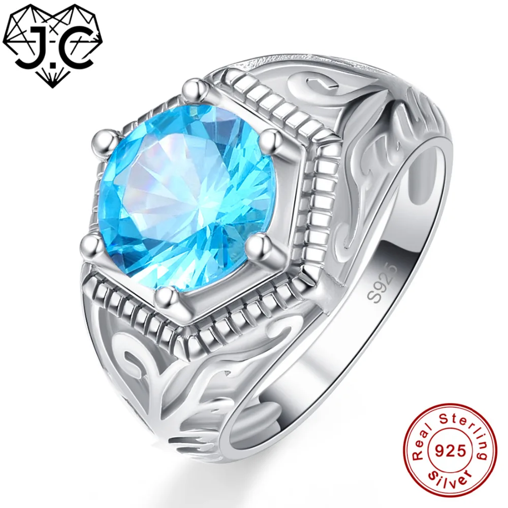 Acheter JC De Mariage Bande Solitaire Fine Bijoux Bleu Topaze Péridot Solide 925 Sterling Bague en argent Taille 6 7 8 9 Pour Femmes Hommes Cadeaux de Fête Pas Cher En Ligne