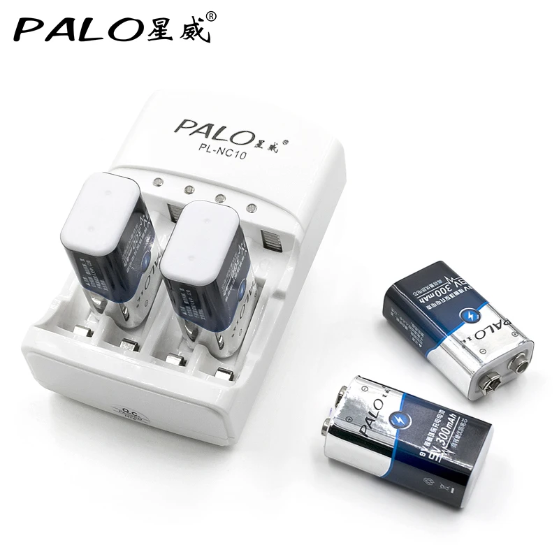. Vente PALO 10 pcs 9 v rechargeable batterie 300 mAh 9 V nimh batterie 9 Volts Batterie + Dédié 2 slots 9 v chargeur Presser d agir Pas Cher En Ligne.